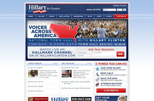 儘管有人認為希拉蕊女士的網站像個劣拙的廣告文宣。四處充滿了眼花撩亂的重點,讓人逛的很不舒服。筆者個人是覺得還好,不過,跟歐巴馬先生的相比之下,的確是較為雜亂無章。